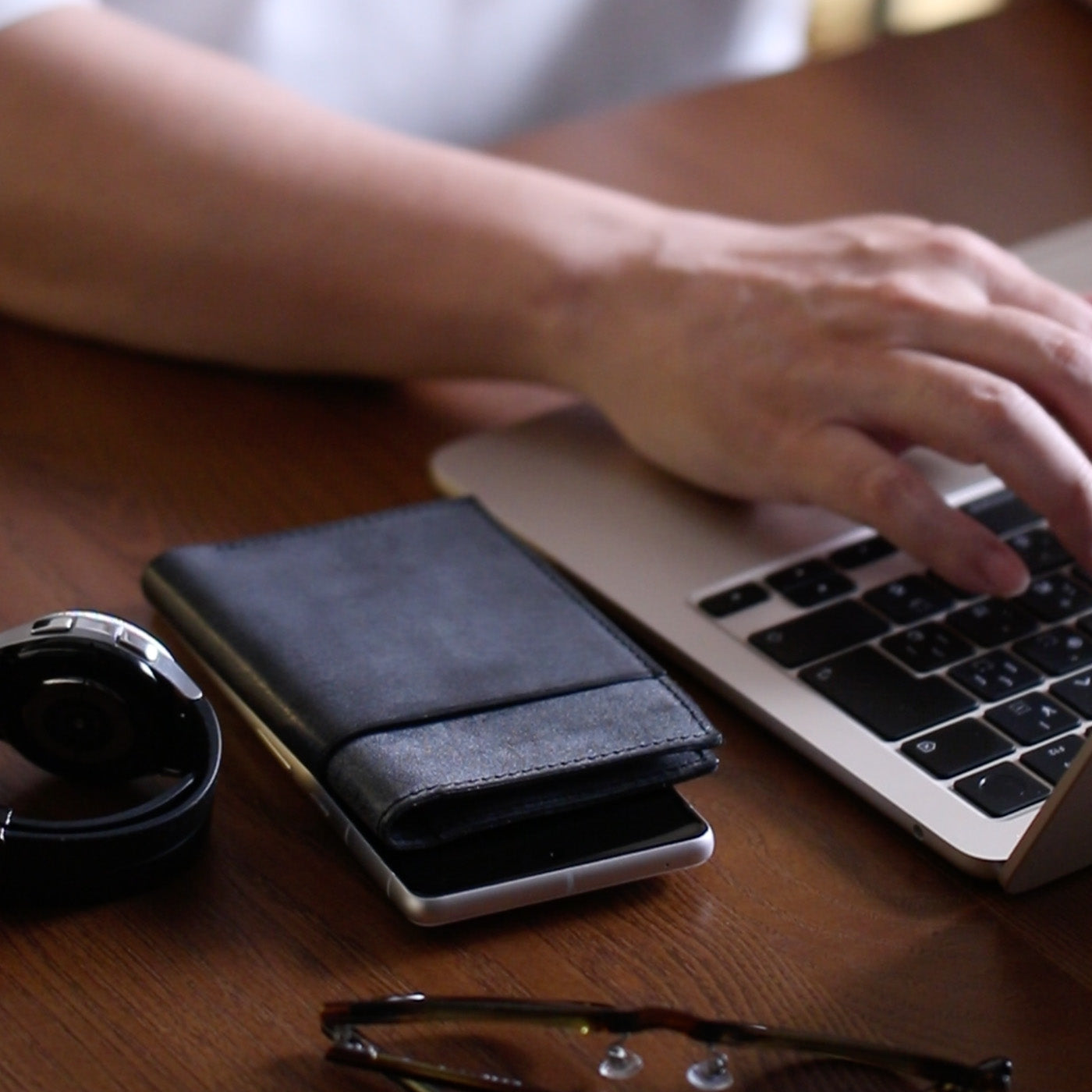 本革の心地よい手触り。